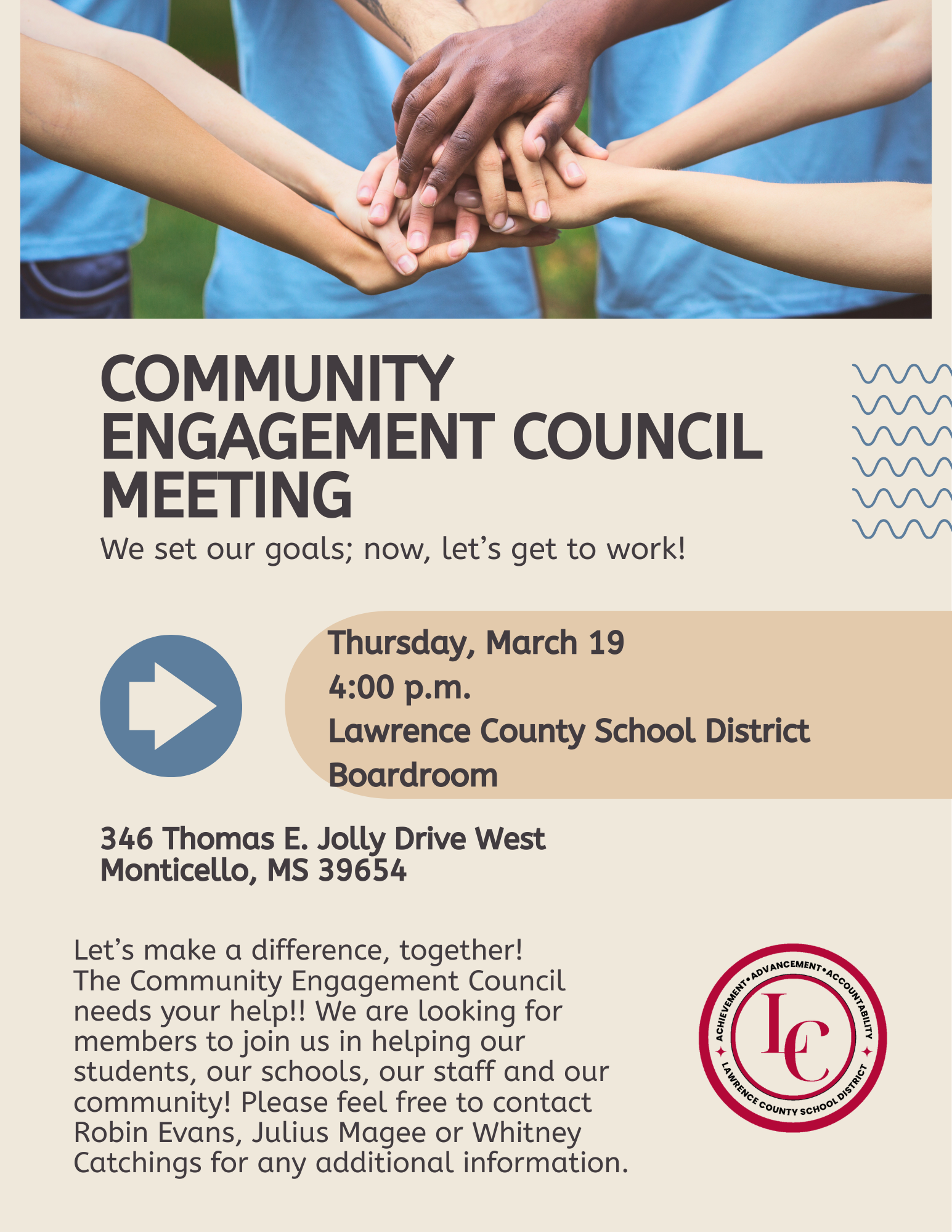 SAVE THE DATE! LCSD will hold an Information Session regarding the Community Engagement Council on Wed., 1/28/26, at 2 p.m. at the LCSD Boardroom. Parents and community members are needed to make t...